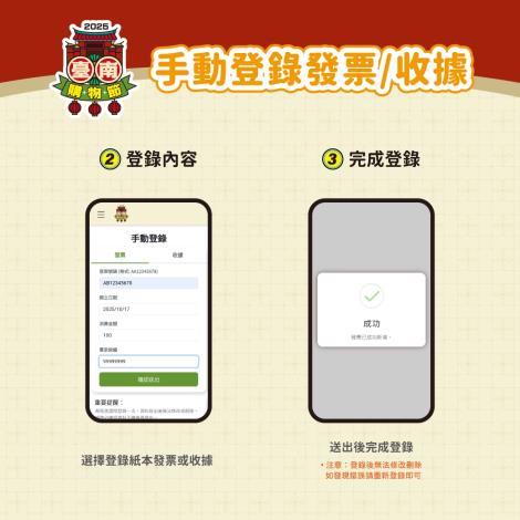 一、2025臺南購物節活動期間自114年10月20日至115年3月1日止(消費憑證發票、收據追溯至114年7月1日起),消費者在本市店家消費,登錄活動官網或購物節官方LINE,累計滿50元就有機會獲得現金、百萬名車等多項好禮。二、、更多活動消息請至2025臺南購物節官網:https://tainanshopping.tw/或臉書捜尋:臺南購物物節。